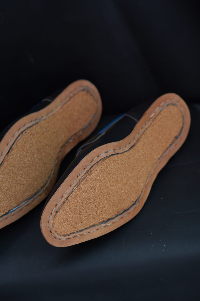 All our uppers are carefully attached to the last, giving the shoe its natural shape even before the lasting process begins. During lasting, we avoid using excessive pressure or high heat, ensuring the leather forms comfortably over the last without being overstretched or forced.